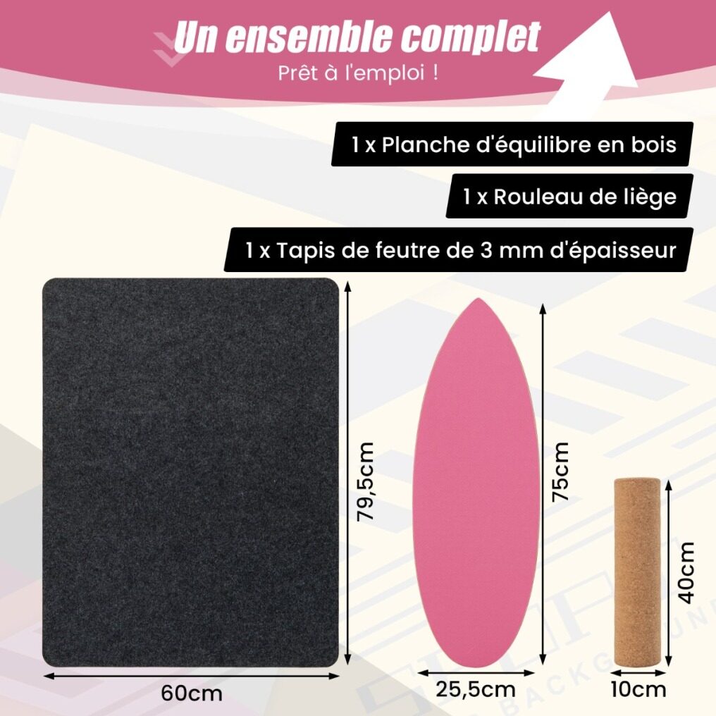 Package includes balance board, cork roll and felt mat