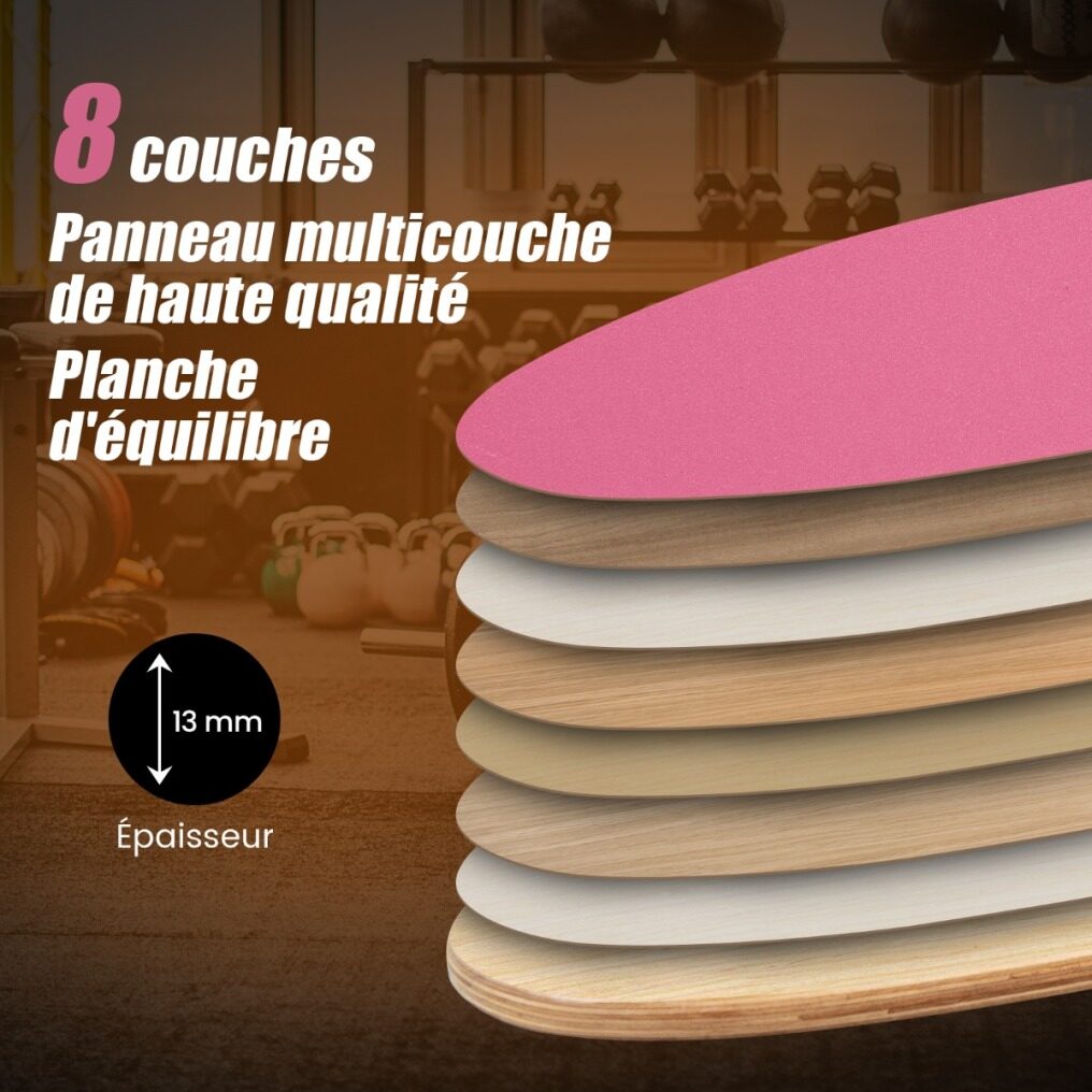 【Durable Construction】This wooden balance board is made of premium natural hardwood pressed with 8-ply wood with a thickness of up to 13 mm, supporting up to 227 kg. In addition, sandpaper is added on it to increase friction and give you better control of the balance board.