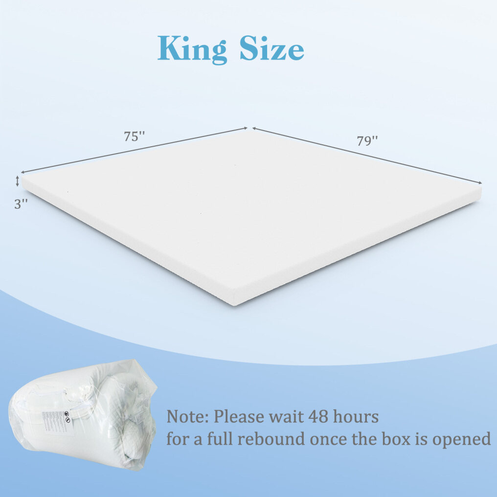 3 Inch Gel-Infused Memory Foam Mattress Topper with Removable Cover-King Size