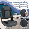 ● Reliable and Weatherproof Material: Crafted from premium PVC leather and meticulously stitched, these boat seats are engineered to withstand long-term rigors of a marine environment. The faux leather surfaces are also waterproof for easy cleaning.