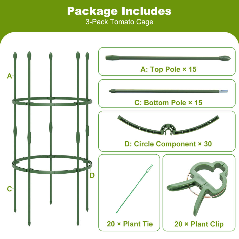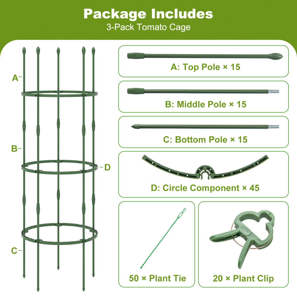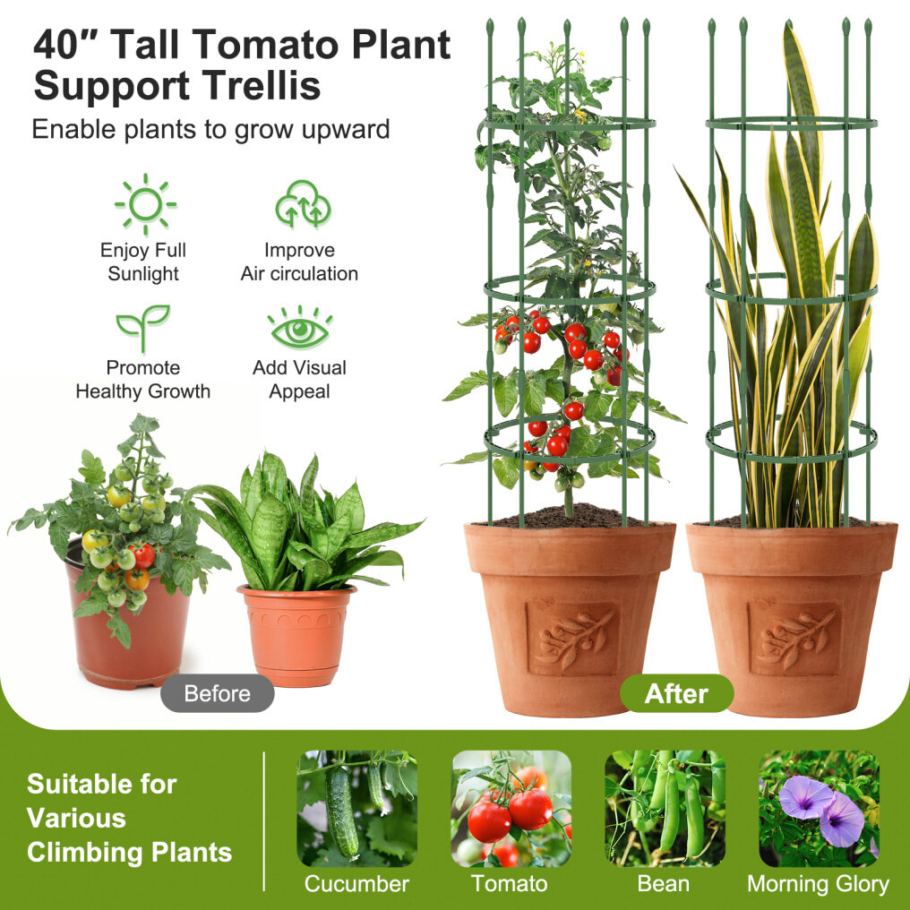 ● 2-in-1 Versatile Use: These garden trellis can be used as plant cages to protect your delicate plants, or used as plant supports, enabling plants to grow upward. They can not only allow plants to enjoy full sunlight for better growth but also add visual appeal to your garden. Other than that, the package includes 20/50 plant ties and 20 plant clips to secure and support plants.