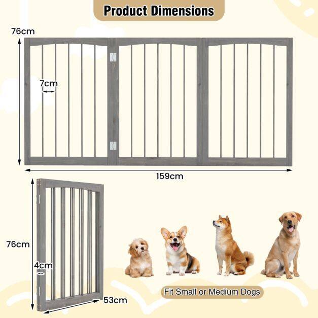 No Assembly Required: The foldable dog fence measures 159 x 76 cm (L x H) when fully extended, which is suitable for small and medium dogs. It requires no installation and eliminates the need for wall-damaging attachments with its freestanding design.
