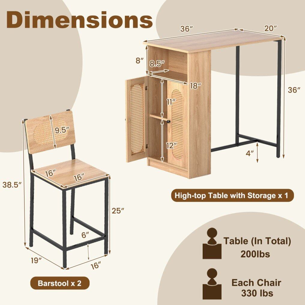 Functionality Meets Style: Equipped with convenient knobs and soft close hinges, the doors of this pub table and chairs set are easy to open and close. The door and back panels are adorned with breathable and colorfast PE rattan that not only infuses a touch of elegance but also promises long-lasting use.