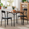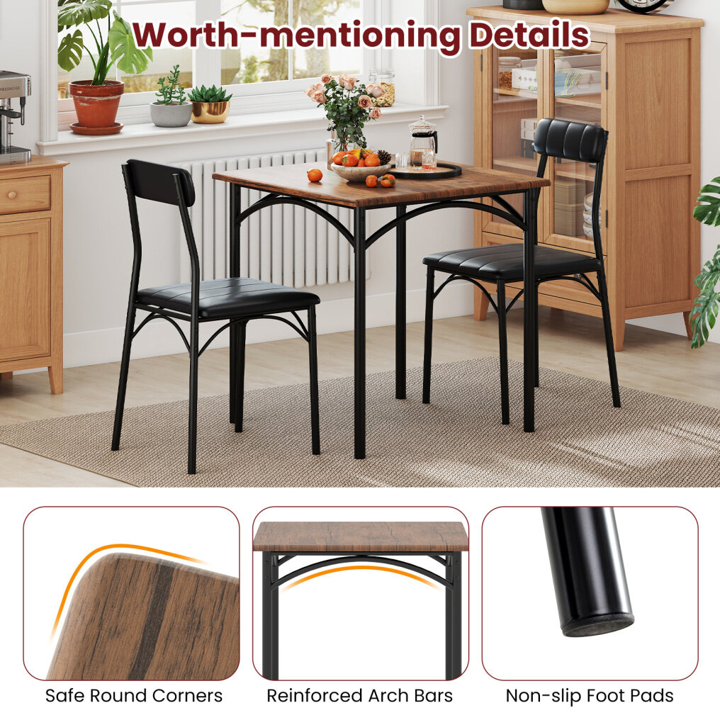 The 3 piece dining table set can comfortably accommodate 2 people, making it ideal for intimate dining experiences or small gatherings. The dining chairs can be neatly tucked underneath the table when not in use, allowing you to maximize space and maintain a clean dining area. More than that, the 2 people dining table set features a padded backrest and cushioned seat for a luxurious seating experience. The foam padding ensures optimal comfort. Additionally, the premium PU leather upholstery not only adds a touch of sophistication but is also easy to maintain, ensuring long-lasting durability. Crafted with a metal frame featuring reinforced arch pipes, this dining table set offers unparalleled stability and structural support. Also, the worth-mentioning details including smooth edges and non-slip pads are designed to avoid unwanted damage.