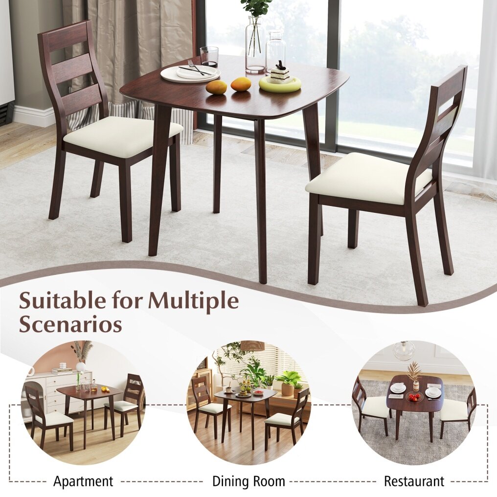 ● Stable Wooden Structure: Made with natural rubber wood, the square dining table and chairs boast exceptional sturdiness, providing a great load capacity and unmatched durability for long-lasting use.