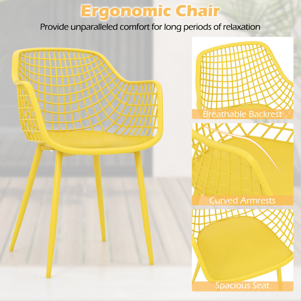 ● Reinforced Metal Structure: Each chair and table features solid metal support with firm screw connection that enhances stability. Moreover, the X-shaped frame under each seat strengthens the overall structure. The adjustable footpads also make each piece stand without wobbling.