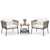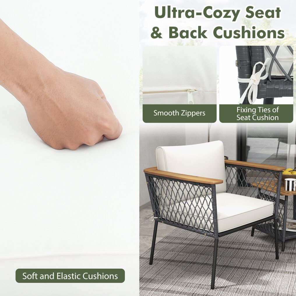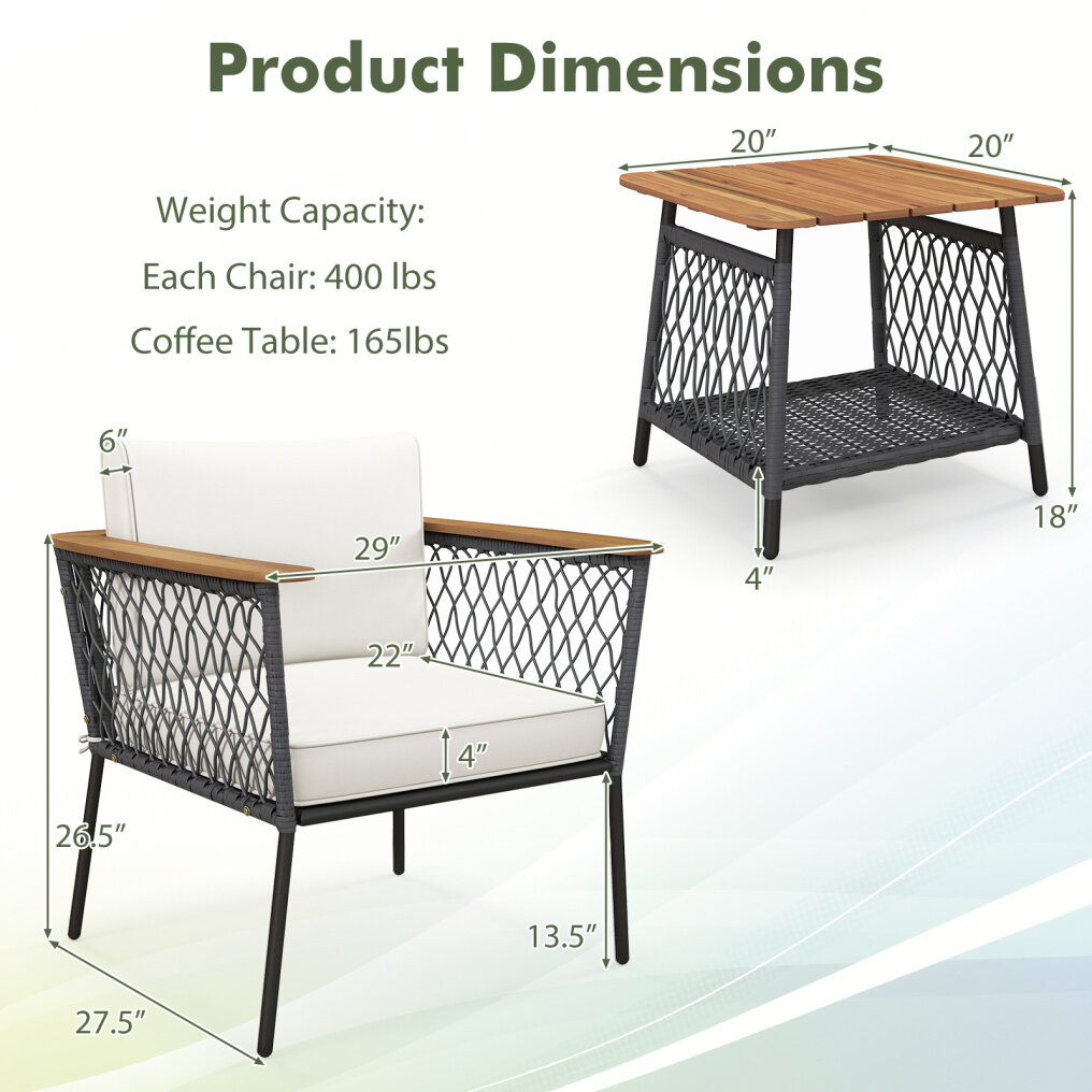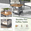 Double-Tier Coffee Table : This 3-piece garden set also comes with a 2-tier coffee table that features a wooden top and a rattan shelf, providing ample space for drinks, snacks and magazines.