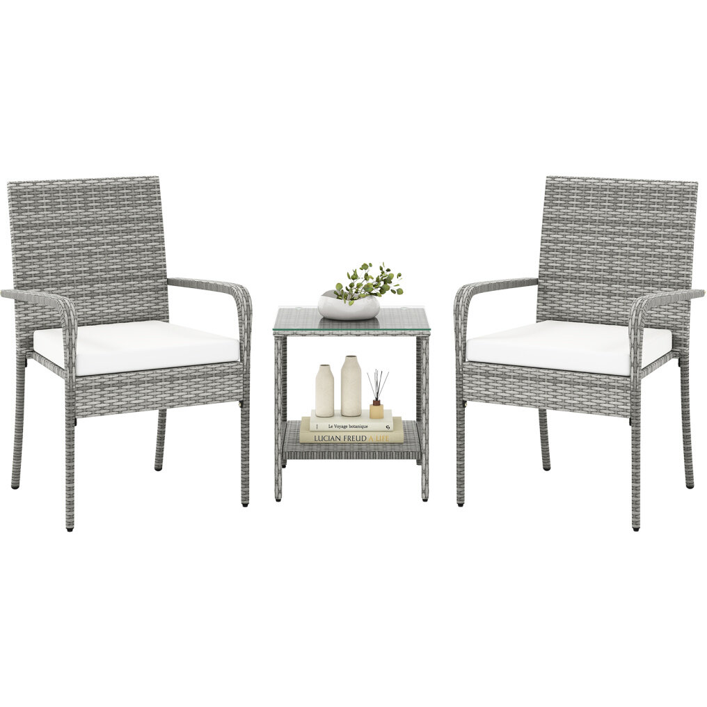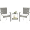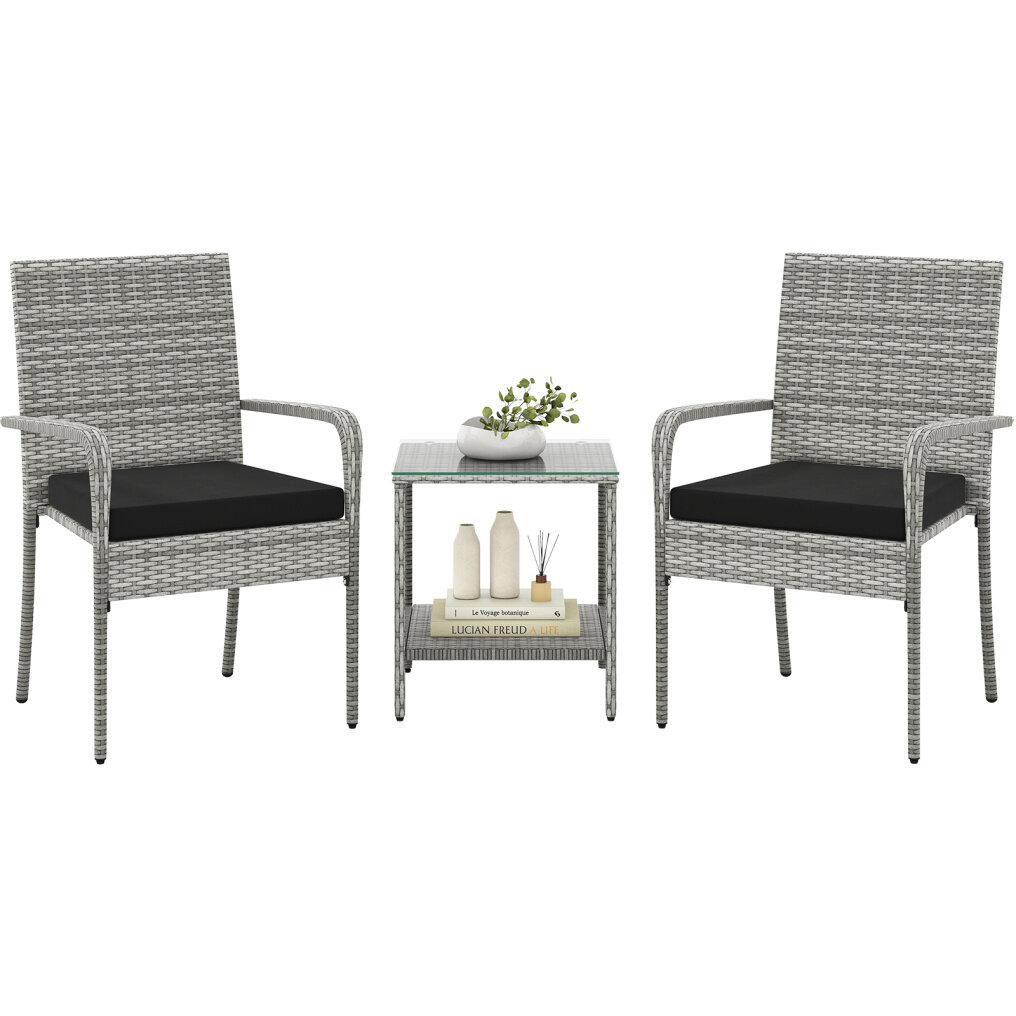 ● Enduring & Elegant Wicker: Crafted with premium mix gray PE rattan which is hand-woven and sunproof, this 3-piece patio set not only adds an aesthetic appeal but also features long-lasting use. Note: Please avoid rain exposure for prolonged service life.