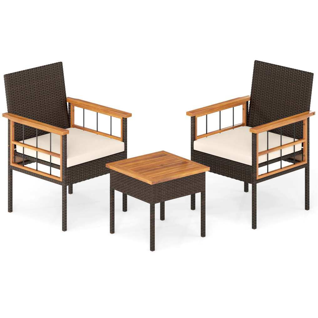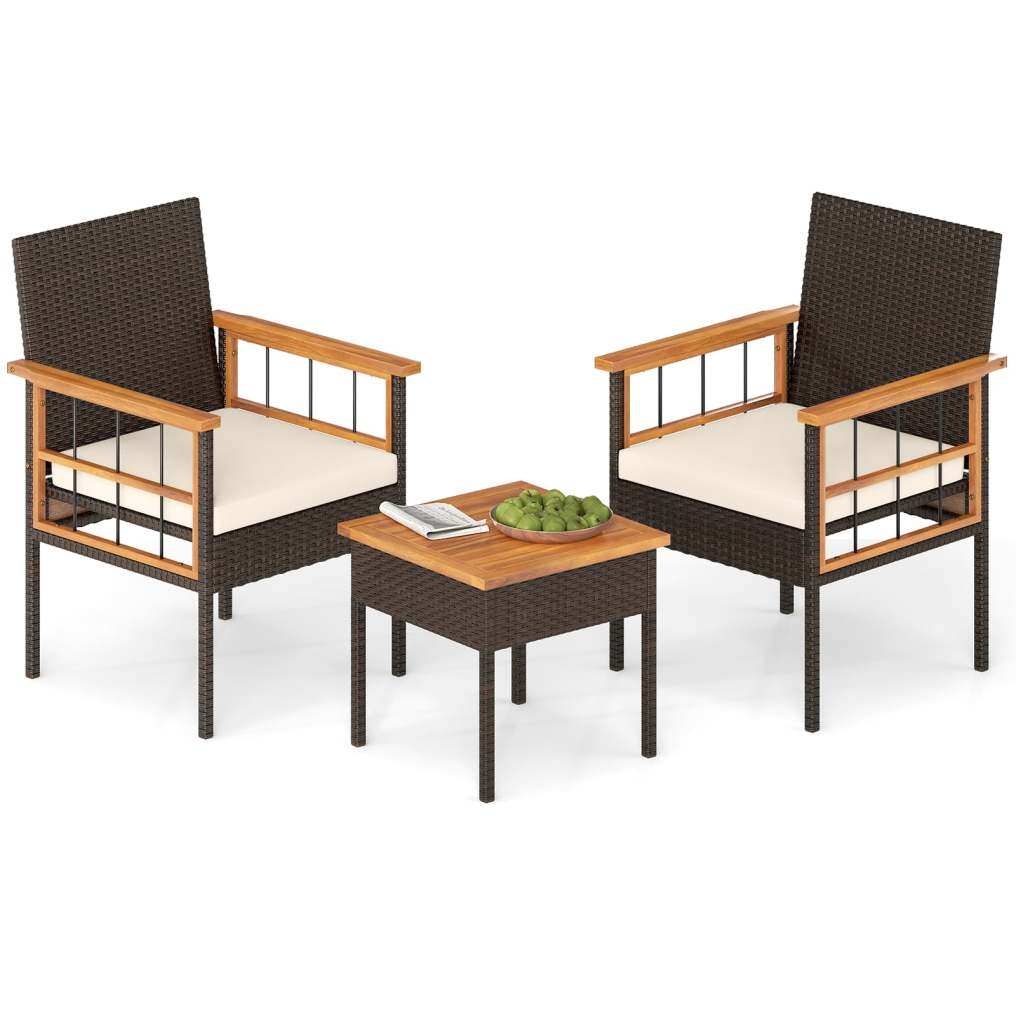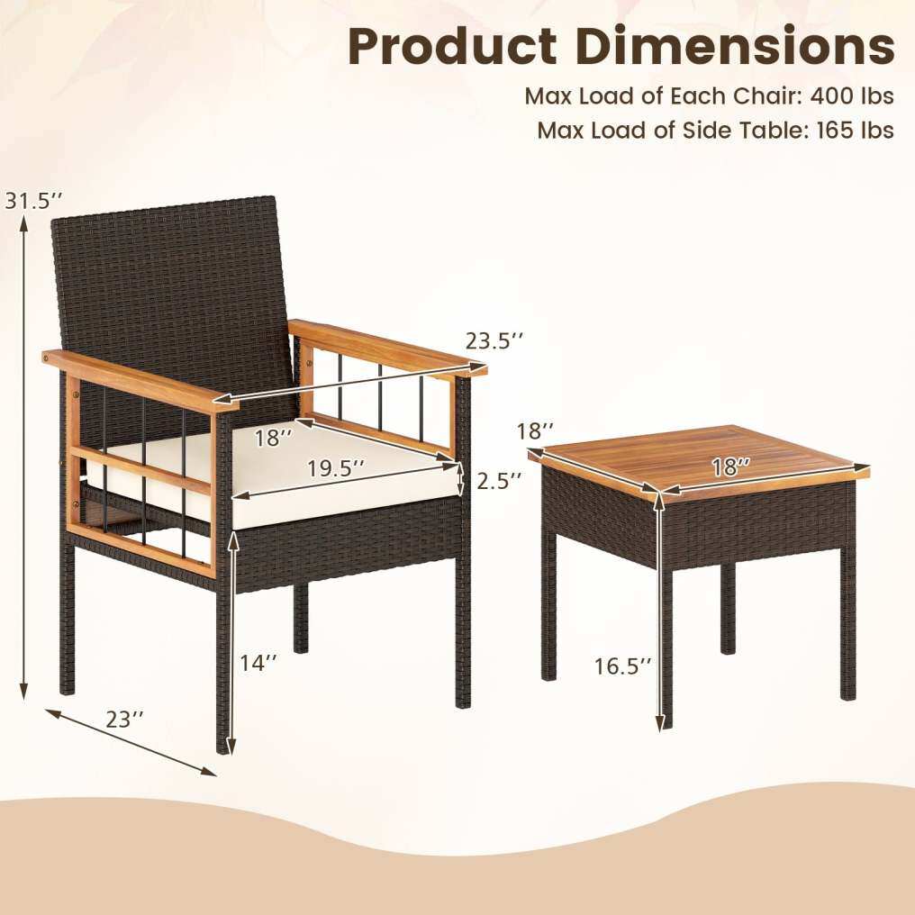 ● Strong Acacia Wood Build: The tabletop and armrests of this outdoor furniture set are crafted from solid acacia wood, known for exceptional strength and inherent natural beauty. Note: Please treat the wood surface with maintenance oil (not included) regularly.