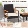 ● Comfortable Cushions Included: Each chair of the wicker set comes with a soft, sponge-filled cushion for added comfort. The cushions have detachable zippered covers, making them easy to clean (hand wash recommended).