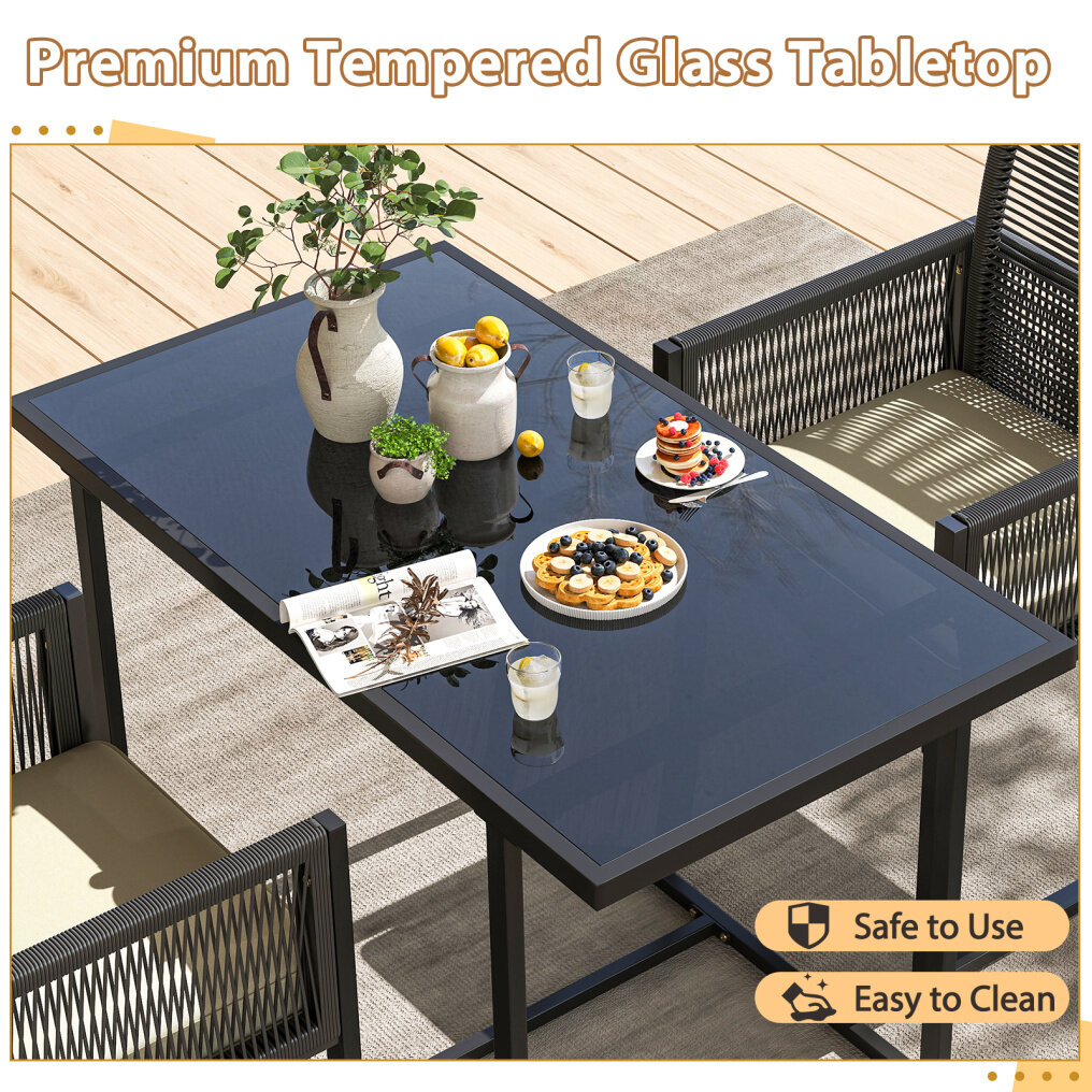 ● Sturdy Dining Experience: Boasting a high-quality tempered glass top held securely by suction cups, this 42.5 inches rectangular dining table perfectly holds dinnerware and dishes steadily.