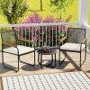 ● Tempered Glass Top Table: The patio furniture set includes a chic round table topped with tempered glass, perfect for setting down your drinks or books safely. Secured by premium suction cups, the glass boasts an easy-to-clean surface for your convenience.