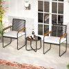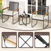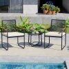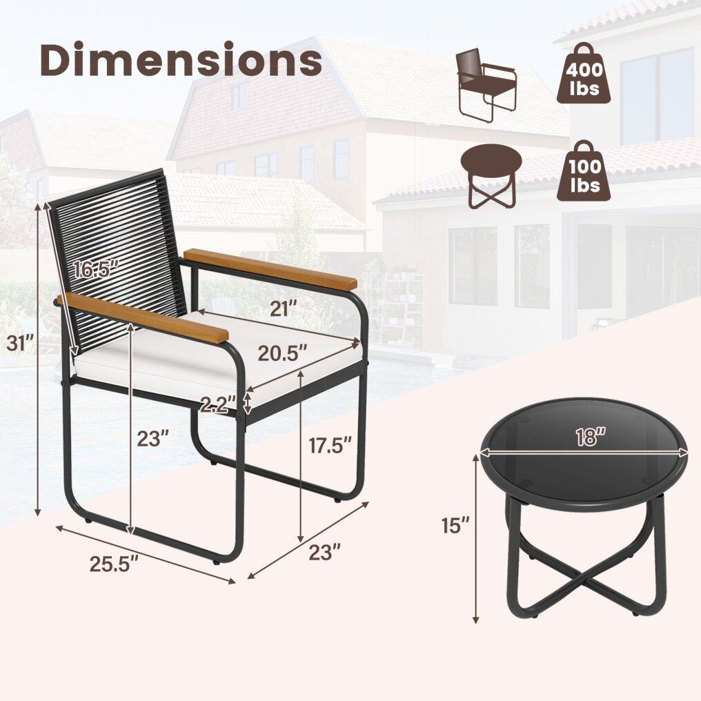 ● Ideal Outdoor Complement: The outdoor wicker furniture set adds style and function to your outdoor space, whether placed on your balcony, in your backyard, or beside the pool. Dimensions of table: 18" × 15" (Dia. × H), dimensions of each chair: 25.5" × 23" × 31" (L × W × H).