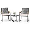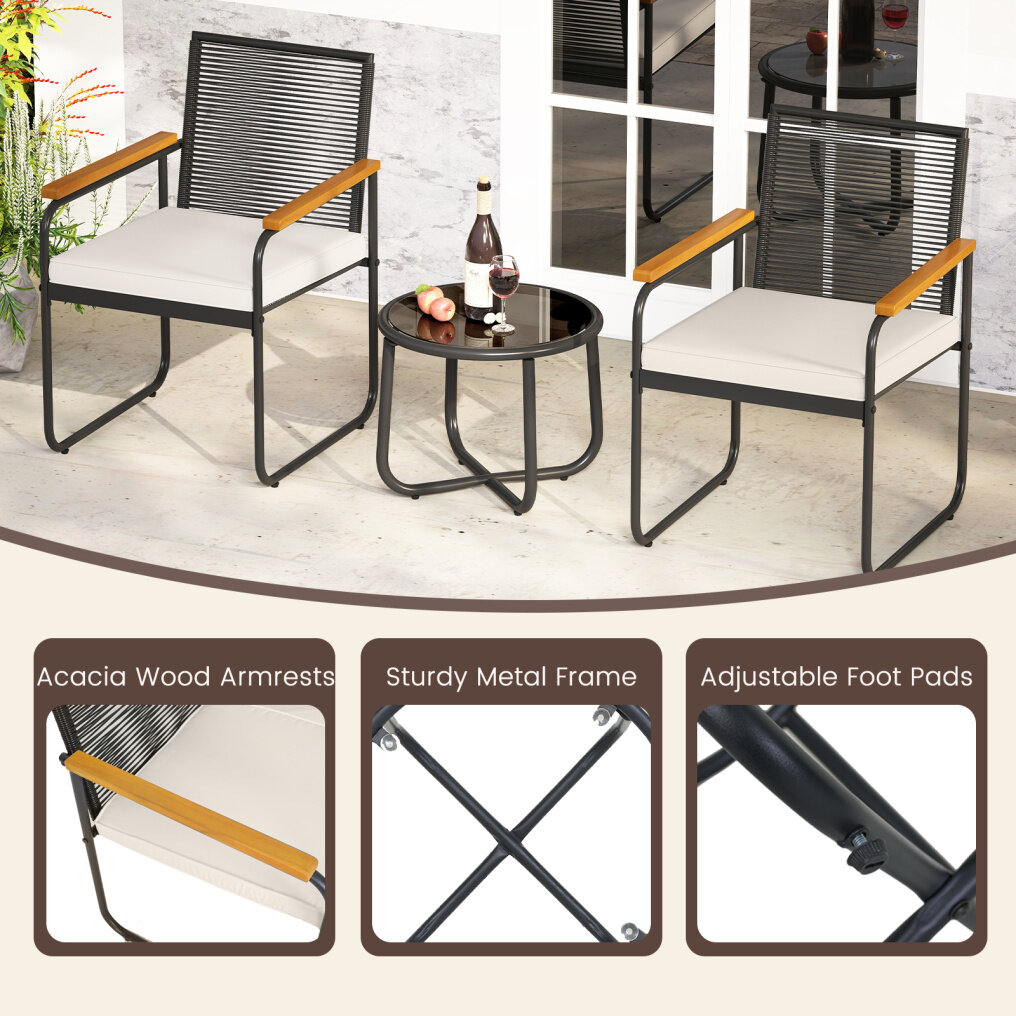 ● Sturdy and Elegant PE Rattan: This 3-piece patio bistro set is made with round PE rattan that is hand-woven and sun-protective, offering both lasting durability and visual charm. Note: Please avoid rain exposure for prolonged service life.