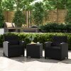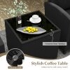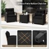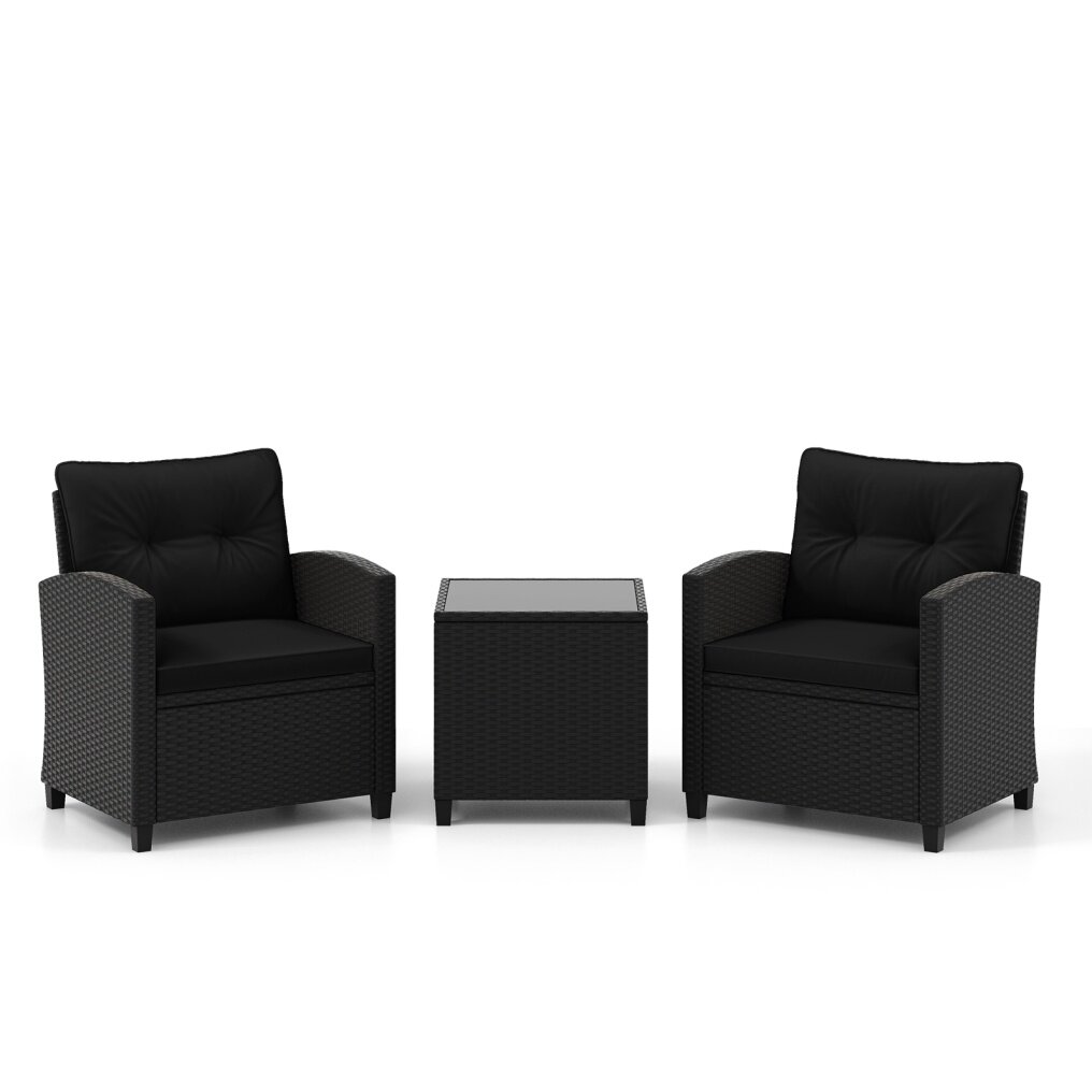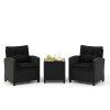 3 Pieces Patio Furniture Set with Tempered Glass Coffee Table-Black