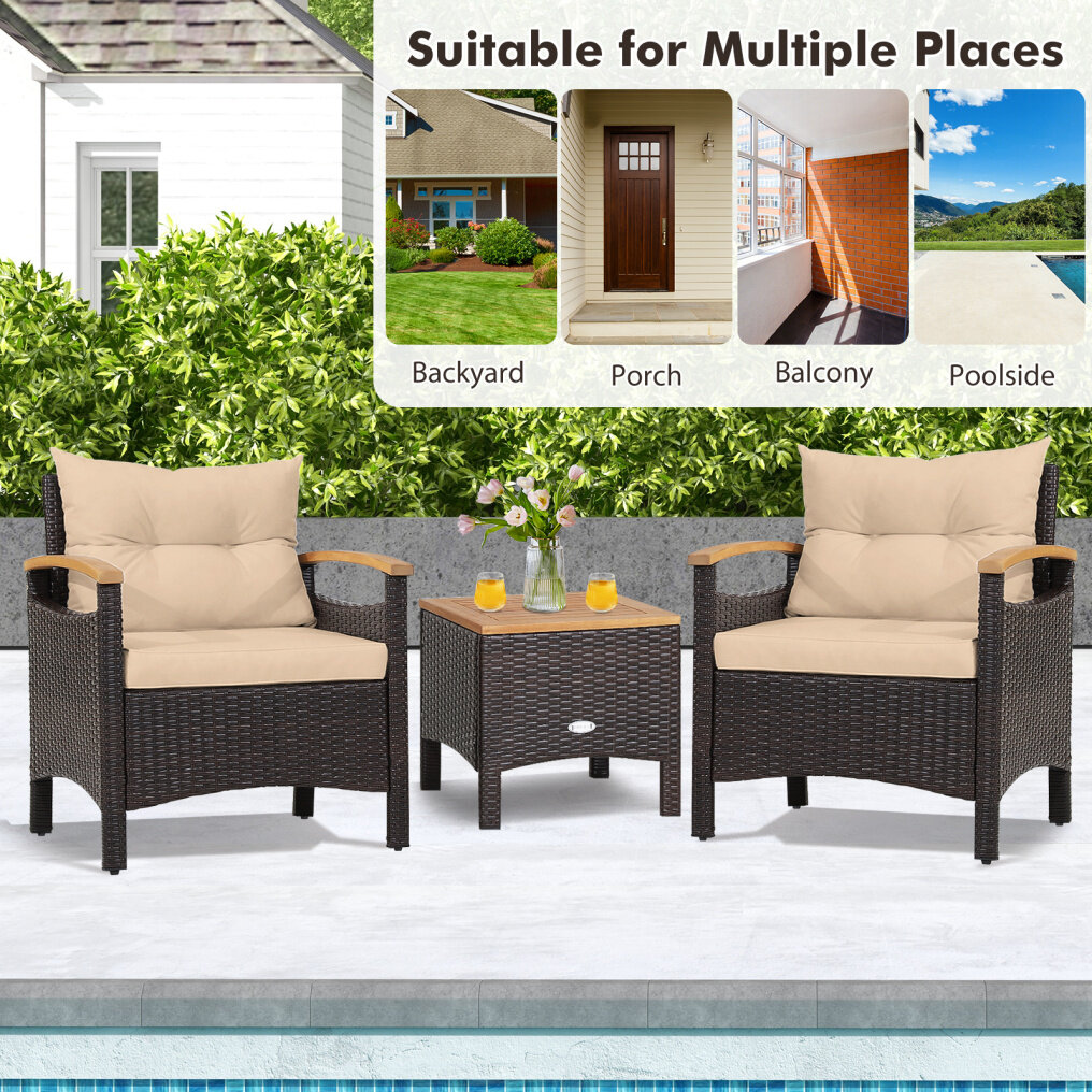 ● Elegant Style and Wide Application: With elegant appearance, this 3-piece patio rattan set fits well with outdoor environment or interior decoration style. You can place it in the poolside, porch, balcony, etc. Whether used separately or in combination, this versatile rattan furniture set will be the highlight of your space.