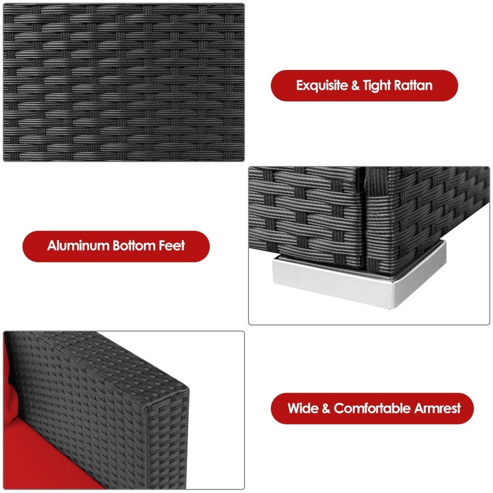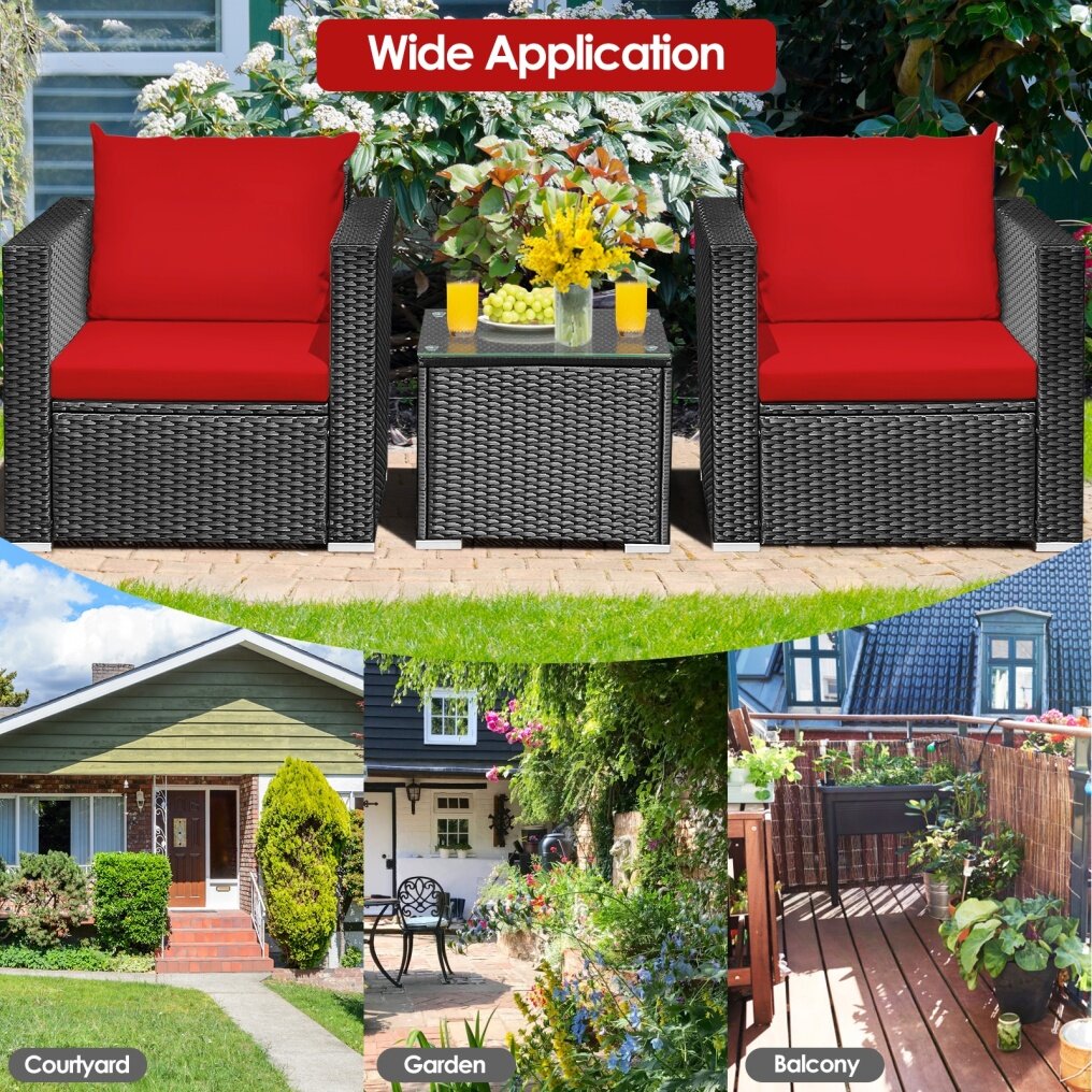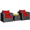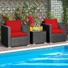 3 Pieces Patio Wicker Conversation Set with Cushion-Red