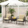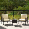 ● 3-piece Bistro Set: This patio set includes 1 side table (16"L x 16"W x 17"H) and 2 armchairs (25"L x 24"W x 29.5"H), which creates a cozy zone in limited places, such as porch, balcony or small patio.