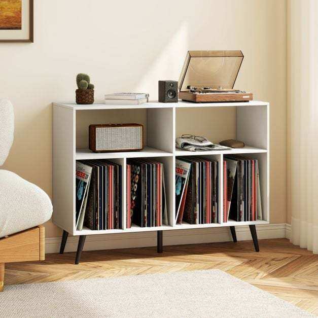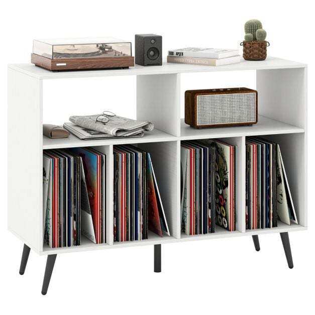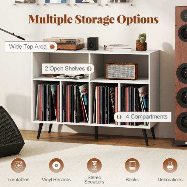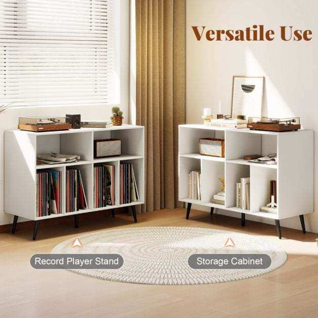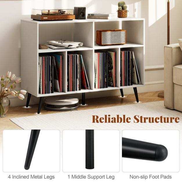 【Reliable Structure】Designed with 5 raised support legs, this record storage cabinet provides great stability and support for your valuable music equipment. In addition, the raised design makes it easier to clean the floor.