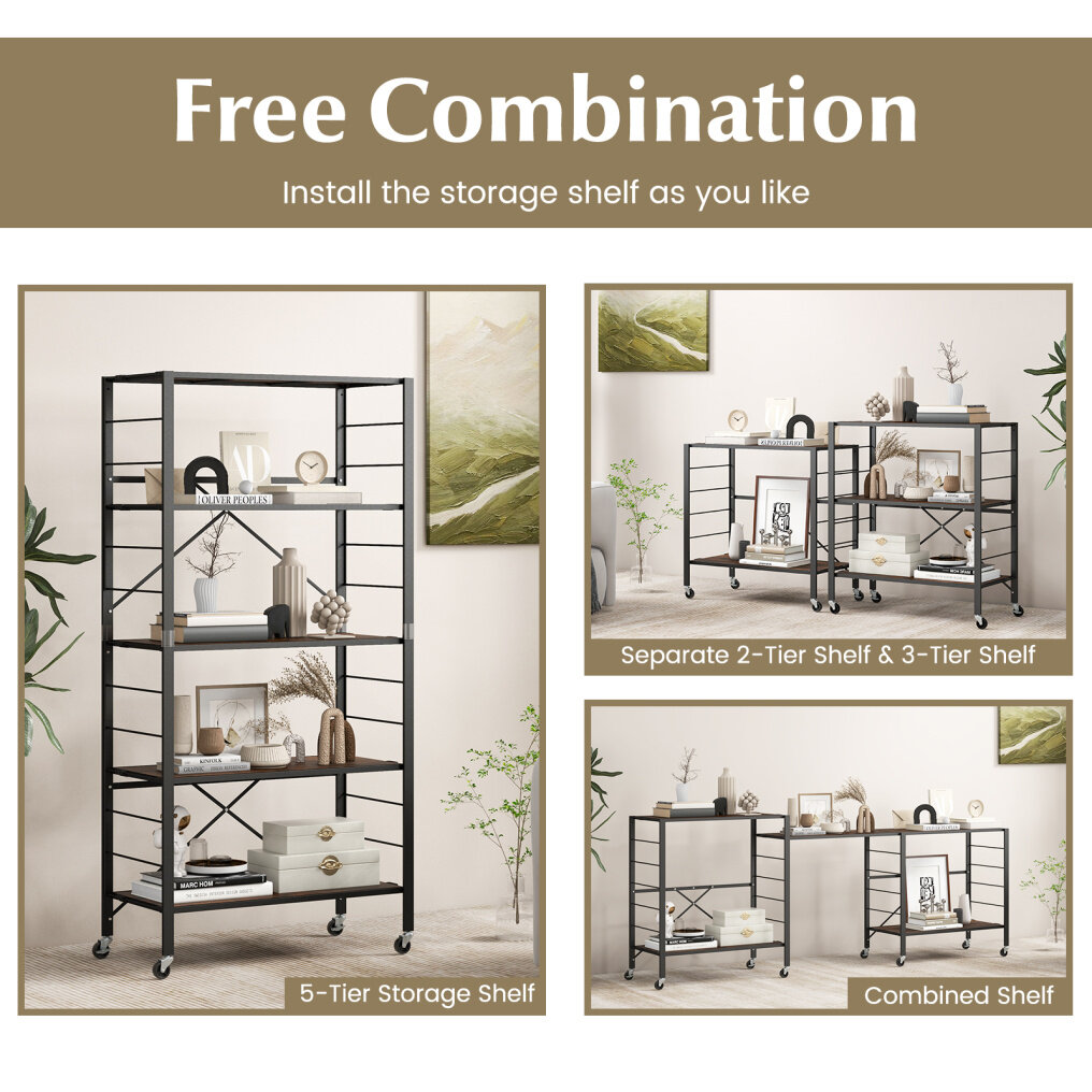 ● Free Combination for Versatility: This 5-tier storage shelf can also be converted into separate 2-tier shelf and 3-tier shelf or combined shelf. You can install the storage shelf as you like.