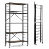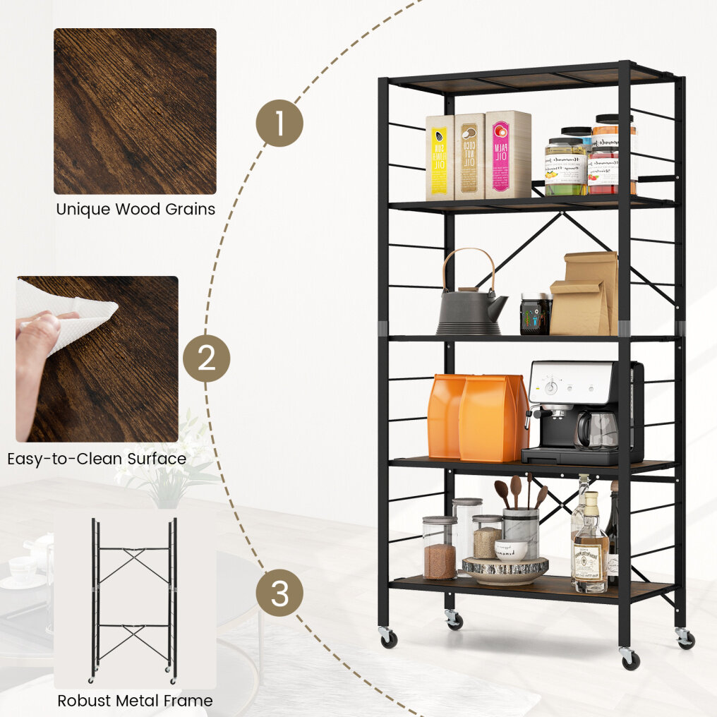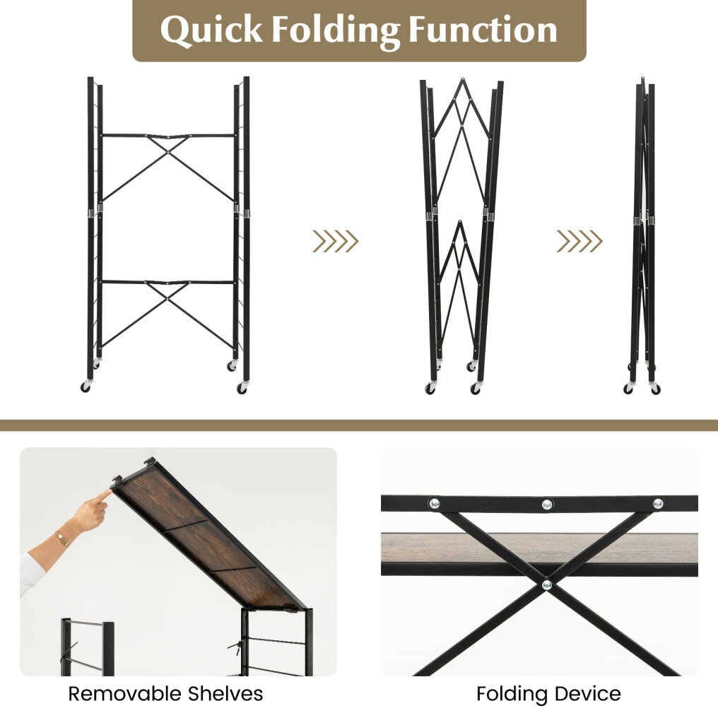 ● Movable and Lockable Wheels: This folding shelving unit is equipped with 4 rolling casters. 4 rotatable wheels make it easy to move, while 2 lockable wheels keep it stable. Plus, you can also detach all wheels to use it as a still storage rack.