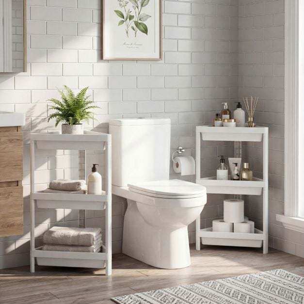 ● Ample 3-Tier Storage: Equipped with 3 spacious shelves and raised baffles, each corner shelf stand securely holds a variety of items while preventing them from falling off.