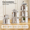 ● Well-crafted Details: Each tier is equipped with rounded baffles to prevent items from falling off during rotation. The base of the bookshelf tower is fitted with non-slip foot pads, providing added stability and reducing the risk of scratches on the floor.