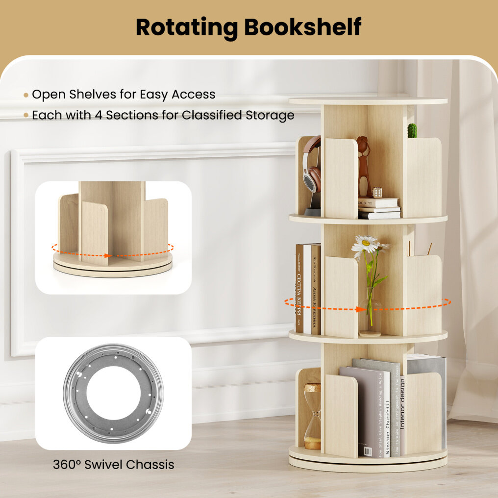 ● Ample Storage Capacity: The 3-tier rotating bookshelf provides plenty of space for storing comic books, photos, and decorations. Each tier is divided into 4 sections by dividers, allowing for an organized and visually appealing display.