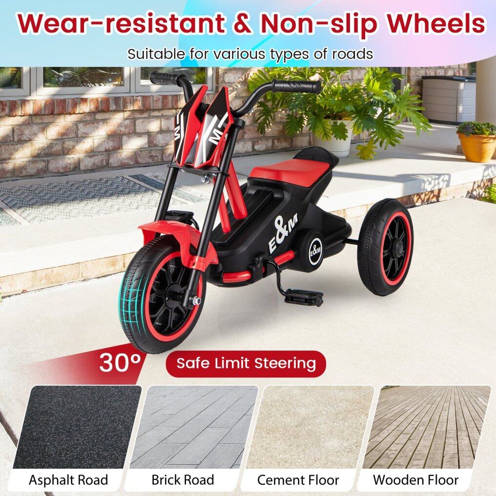 Stable 3-Wheeled Tricycle: This 3-wheeled kids bike provides a stabler and more balanced ride, reducing the risk of tipping. The wear-resistant and non-slip wheels roll smoothly on various surfaces, such as concrete, cement and wooden floor.