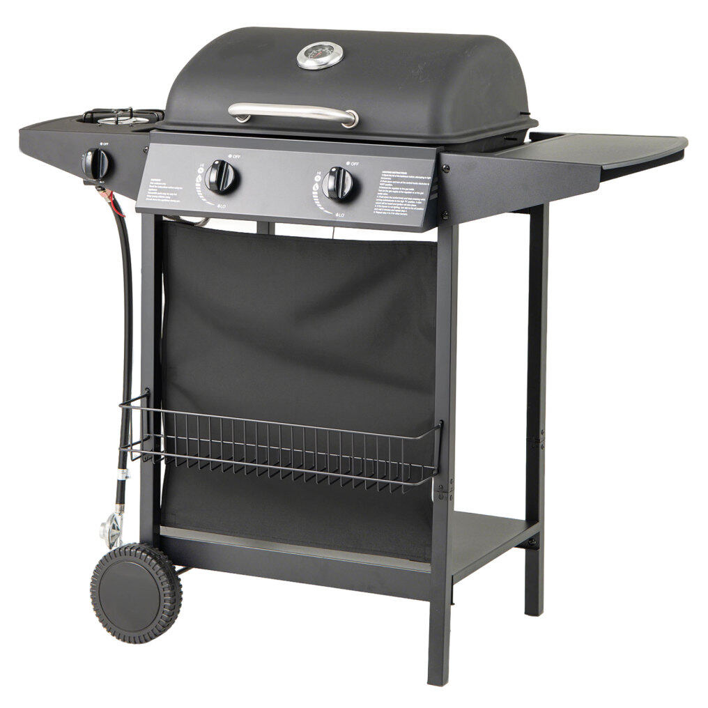 ● Powerful Heating Capability: For high-efficiency grilling, the outdoor BBQ grill offers two 9,000 BTU main burners plus a 12,000 BTU side burner. Each burner is equipped with independent knob control, allowing for precise temperature adjustment. And 2 flame tamers ensure even heat distribution.