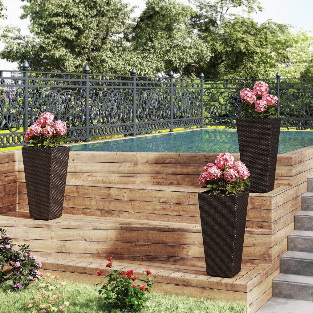 ● Wide Application: These patio planters are perfect for a wide range of outdoor settings. Place them by the poolside to add a touch of greenery to your relaxation area. They also look great on patios or entrances, creating an inviting atmosphere.