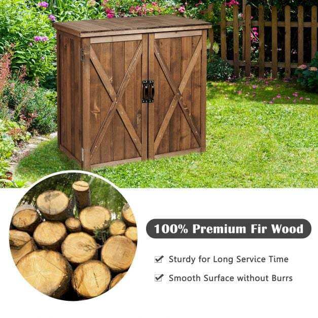 Made of high-quality fir and tightly connected by hardware, this cabinet is sturdy and not easy to fall apart. The water-based paint coating on the surface provides protection against bad weather and ensures a longer service life for the cabinet. The spacious interior space is convenient for placing tools such as kettles, shovels and water pipes. In addition, with a simple and beautiful design, this storage shed will be an ideal decoration for the garden, backyard, terrace and other places!