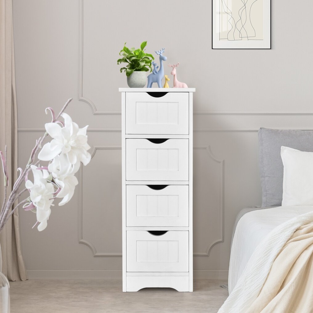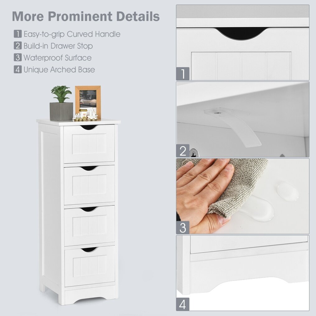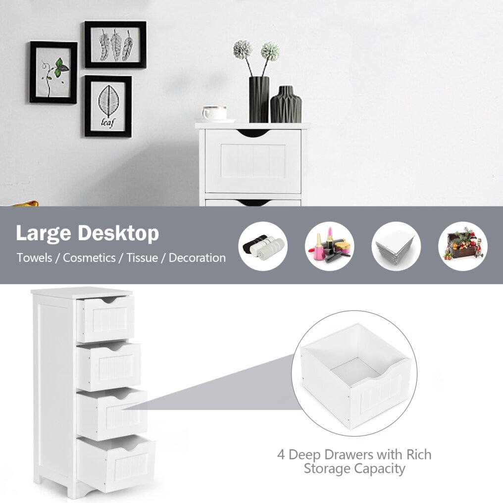 ● Large Drawers for More Storage Space: Bathroom floor cabinet with 4 Large 10" x 9" x 5.5" drawers offer you plenty of storage space for your books, documents, snacks, makeup, stuffs and so on. You can easily reach to them with convenience.
