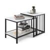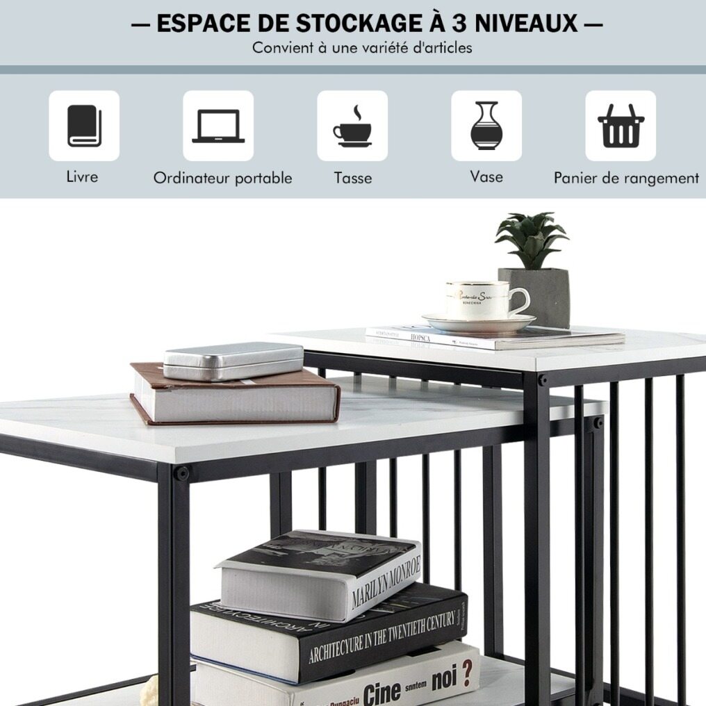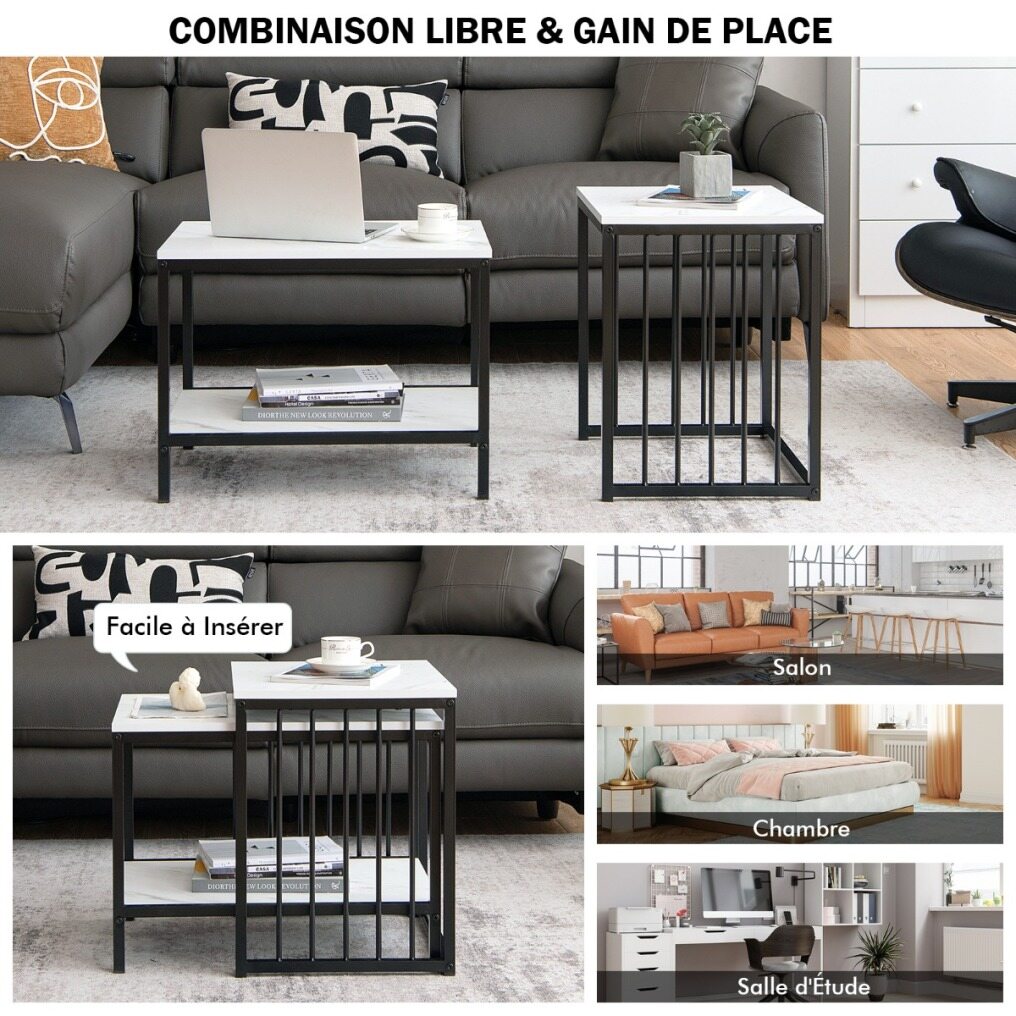 Practical Space Organizer: This end table set consists of a tall end table (45cmL x 40cmW x 52cmH) and a small end table (60cmL x39.5cmW x45.5cmH), providing 3-tier storage space for a variety items, such as book, laptop, cup, vase, storage basket and more. The built-in side fence helps avoid falling.