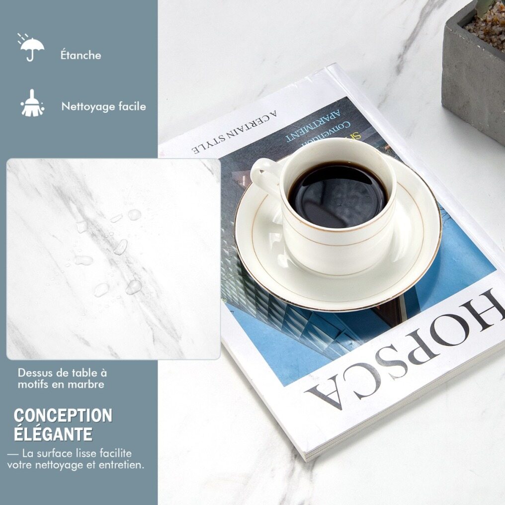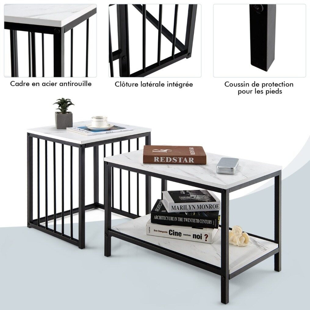Modern Design & Humanized Details: Elegant design perfectly blends in most home decor. Marble-patterned tabletop with smooth edge adds a touch of charm. The tables are equipped with protective foot pad, which enhances stability, reduce sound in moving and prevent scratches to the ground.
