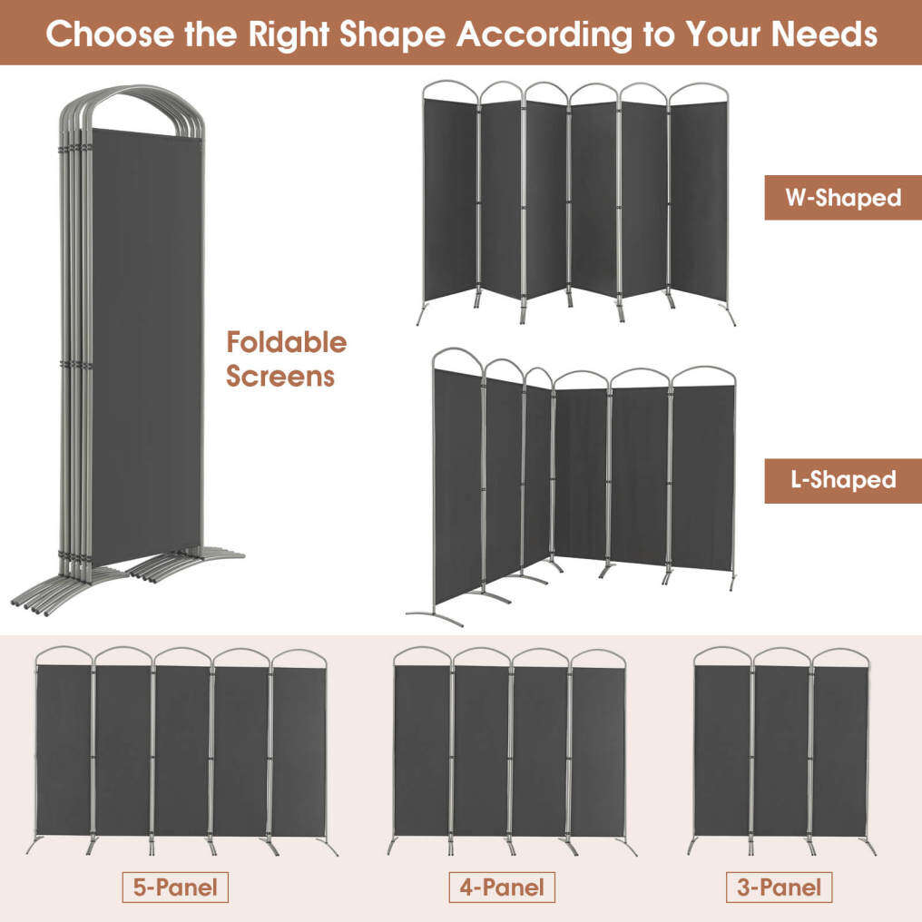 A Variety of Folding Options: Thanks to the connect buckle between each panel, this 6-panel room partition allows you to adjust it to arranged into various shapes as per your preference, such as L-shaped and W-shaped. Additionally, the freestanding room screen can be folded up for storage, saving much space.