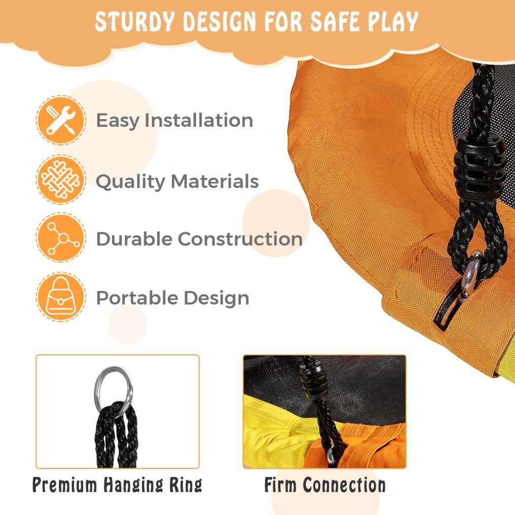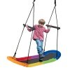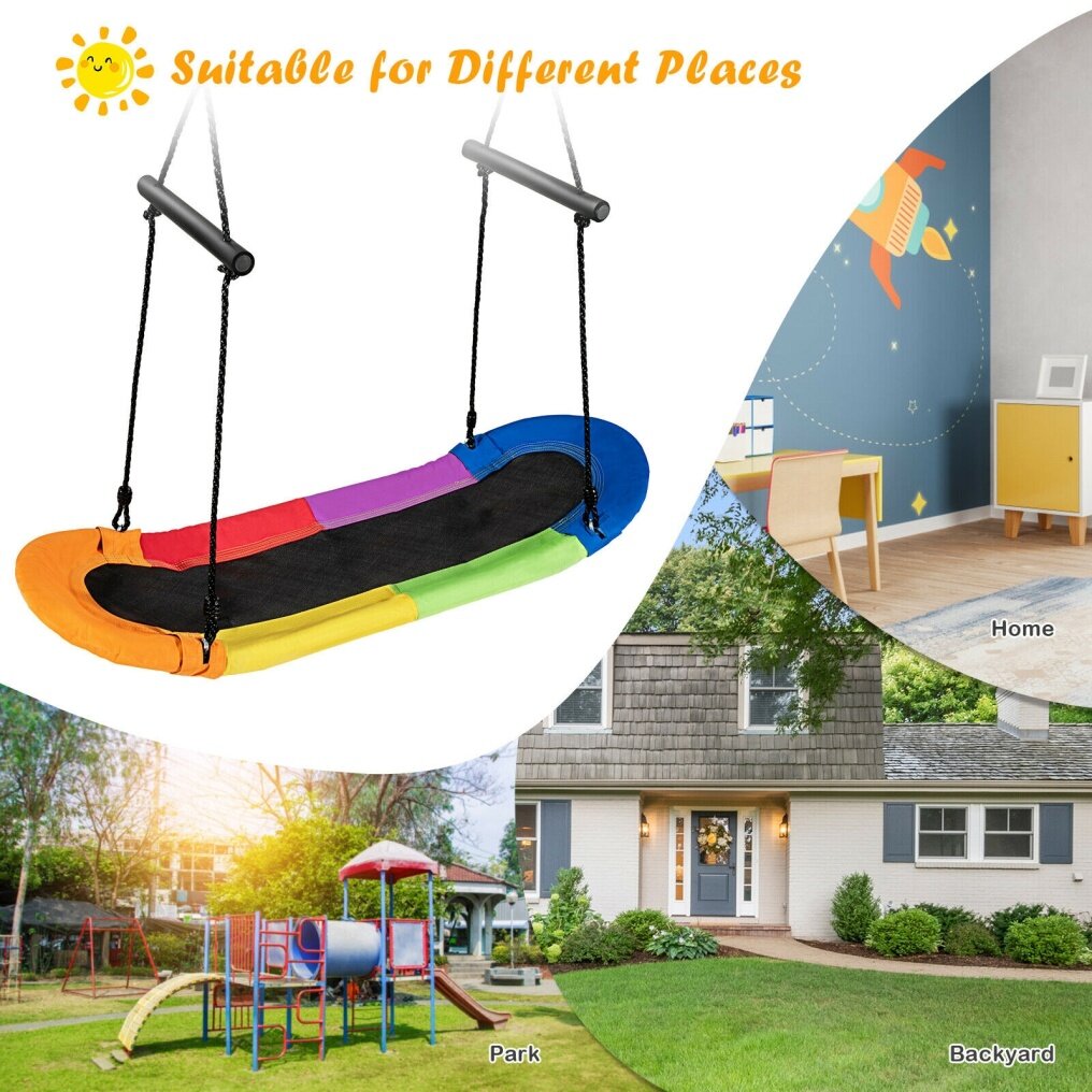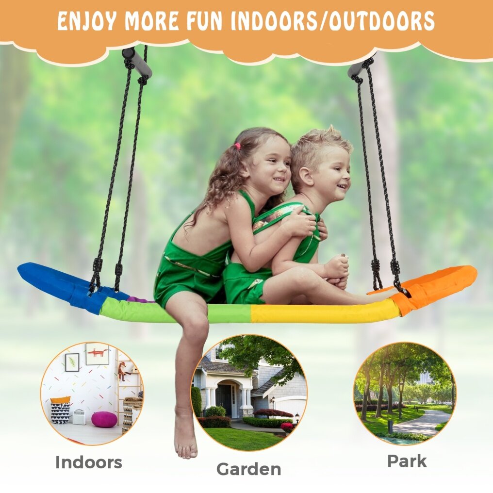 - Available for 1 – 3 kids to swing together thanks to its spacious swingboard