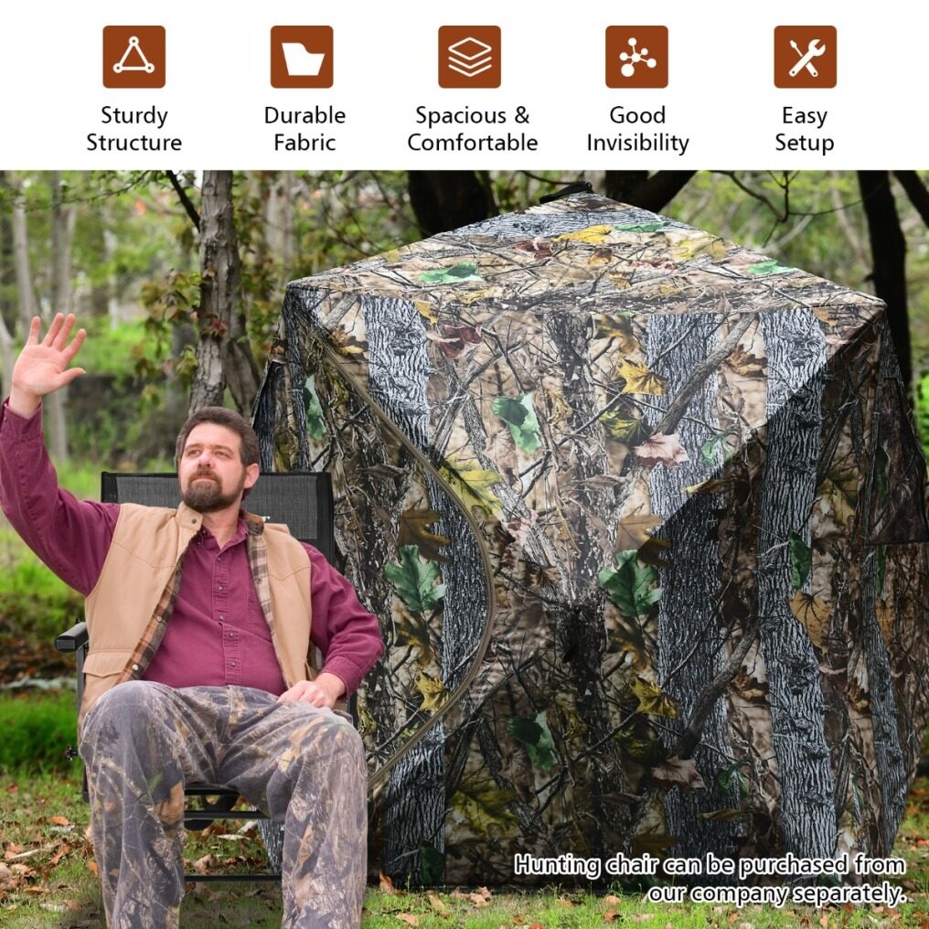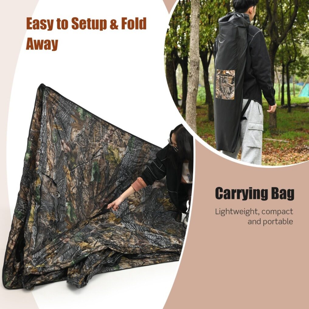 Lifelike Camouflage: Featuring vivid jungle camouflage, the hunting blind can integrate into the surrounding habitat naturally. You can arrange the hunting blind in the wild a few days in advance, making the blind become one with the wild gradually. With this professional hunting accompany, your security and hunting success will improve a lot.