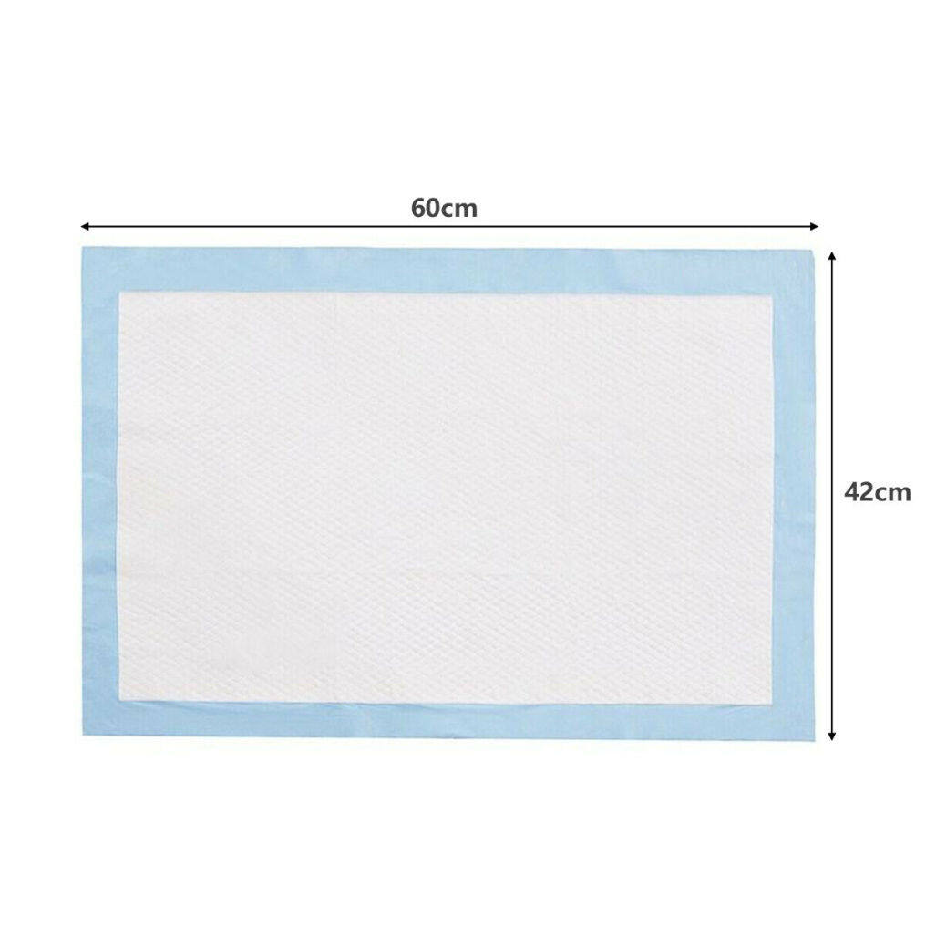 Large Coverage with XL Size: This dog pad measures 43x60cm, providing a great amount of coverage on your sofa, kennel, floor, car seat, and more. They are known as potty pads, wee-wee pads, piddle pads, or dog training pads for large to small-sized pets, puppies, rabbits, and so on.