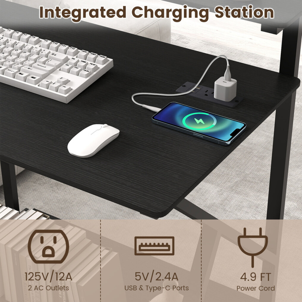 ● Built-in Power Strip: A built-in power hub turns this mobile computer workstation into a clutter-free command center thanks to 2 AC outlets, USB, and Type-C ports that keep every device charged. No more crawling under your compact office desk—just plug monitors, laptops, and phones directly into the desktop strip for instant power.