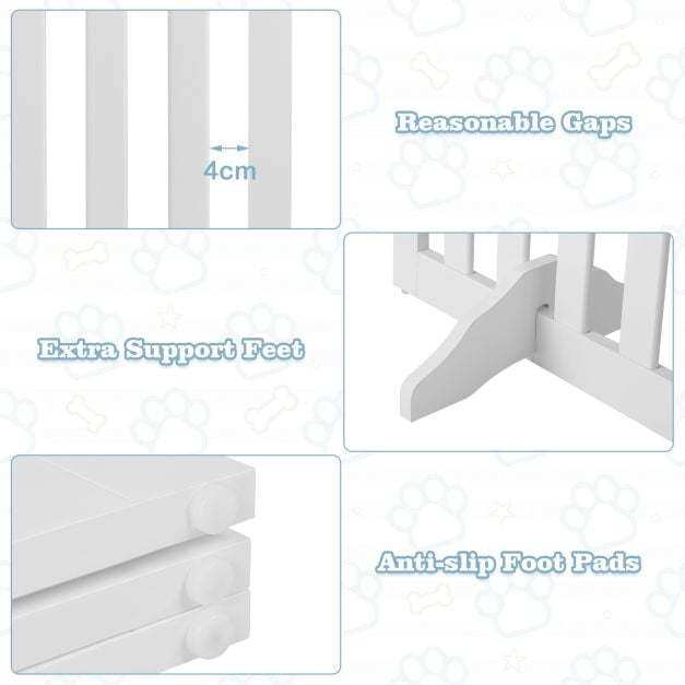 Pretty & Elegant Appearance: The simple and classic design makes this freestanding pet gate look very pretty. It provides a safe area for animals and makes a great addition to your home.