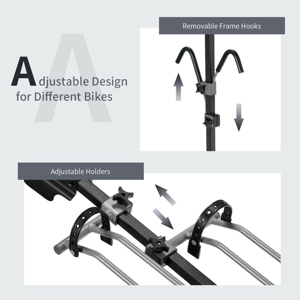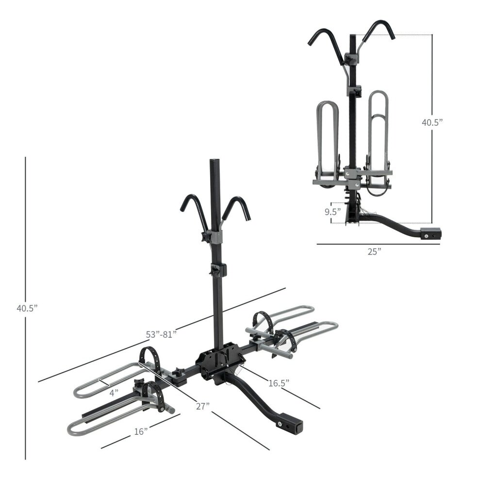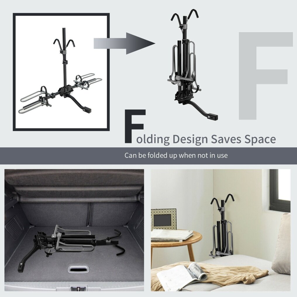 You can also adjust the bike wheels holder from 42" to 81", as well as the height of the hooks depending on your bikes to achieve better fixation. Its hooks are foam-padded, keeping your bikes from scratches. Thus, it can hold bikes of different sizes. Solid steel frame ensures high durability and stability, and its weight capacity is up to 132 lbs, which meets your daily requirements. In addition, by removing the safety pins, you can fold it into compact size for convenient storage. It's also easy to assemble. Compatible with 1-1/4" and 2" hitch receiver, it is suitable for cars, trucks, SUV's and minivans.