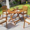 ● Sturdy and Reliable Construction: This wooden outdoor dining table is crafted of premium solid wood with PEFC certification, ensuring lasting durability and sustainability. The wood surface features a protective teak oil finish that enhances natural beauty and resists wear.