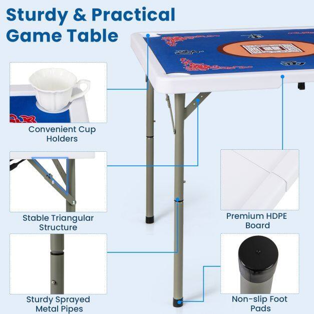 ● Suitable for Various Scenarios: This poker table is not just for home use, it's versatile enough for a variety of scenarios. Whether it's a family night, an outdoor picnic, or a lively party, this folding mahjong table will be a great addition to any social gathering.