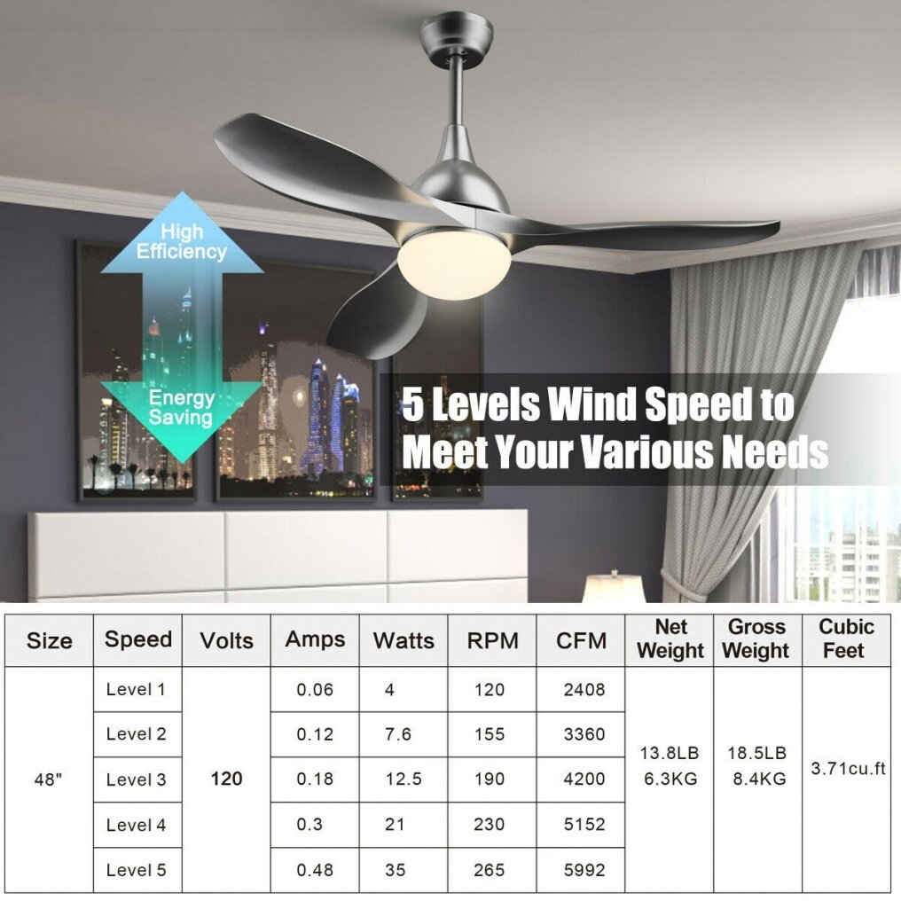 It combines lighting, fan and decorative features into one. Our ceiling fan designed with a glass shade and comes with a high-quality LED bulb that can light your room while bringing you a snug breeze at the same time. A reversible airflow provides a comfy breeze, whether you want to cool down sweltering summer days on the porch or provide snug warmth in your room. What’s more, it has 8 hours timer function that can be auto-off within 1 hour, 4 hours or 8 hours according to your personal preference. It can work in any room in your home from your bedroom to your garage, even outdoors on enclosed patios and porches.
