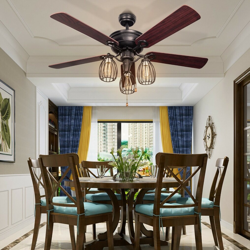 The silent motor of this ceiling fan can create a quiet living environment without affecting the quality of your sleep. At the same time, it can provide a stable and strong power supply and allow you to choose between 61rpm, 99 rpm, and 164 rpm at will. The reversible electric fan can choose different air circulation directions, making you warm in winter and cool in summer. What's more, the ceiling fan with light can be adjusted in height through the included 5-inch and 10-inch down rods to ensure proper distance from the ceiling and optimize airflow. The pull chain control is included in the package, so you can easily control the switch to turn on/off and adjust the fan speed.