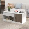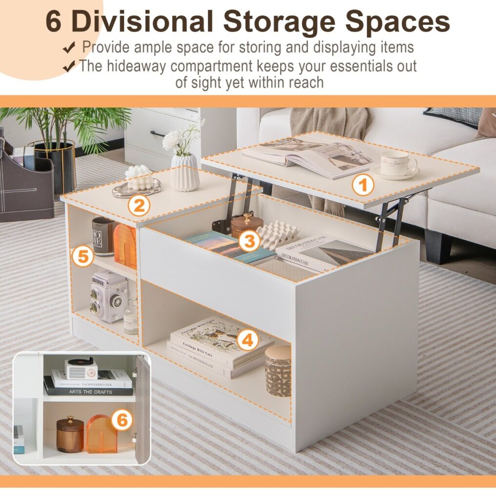 ● 6 Spacious Divisional Storage Space: The wood coffee table is designed with an elevated tabletop, a side tabletop, a large compartment, a 2-tier storage shelf, and a 2-tier door cabinet, providing ample space for storing and displaying items. Plus, there exists a hideaway compartment to keep your essentials out of sight yet within reach.