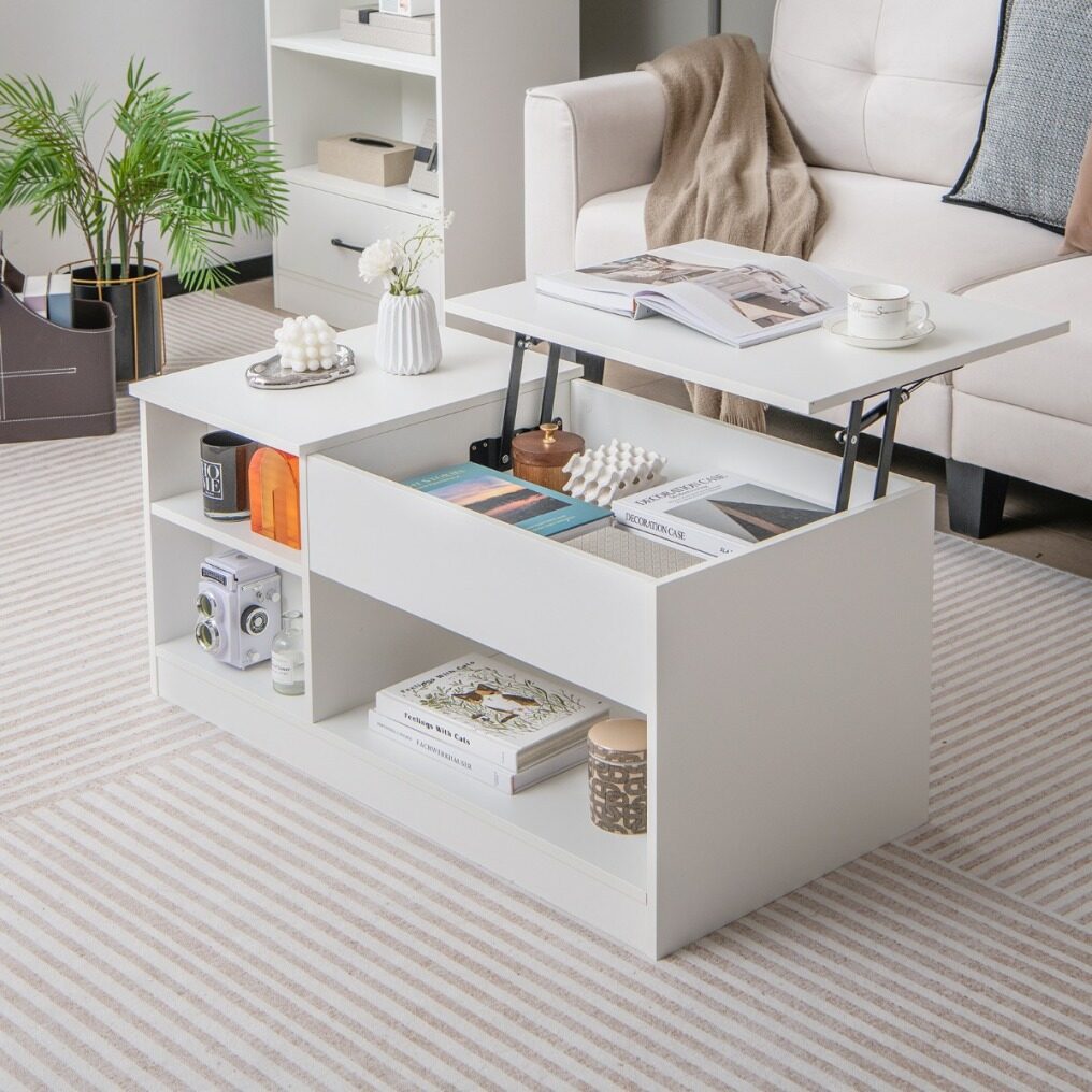 ● Practical Lift-Top Design: The coffee table adopts a lift tabletop, which can also be used as a computer desk to create a quick workspace or a decent dining space when sitting on your sofa. Besides, the tabletop height can be adjusted from 18" to 23.5".