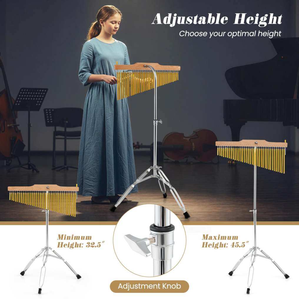 Height-Adjustable Design: The bell percussion instrument kit comes with an adjustable stand to accommodate musicians of different heights. The adjustable height range is 83-116 cm.