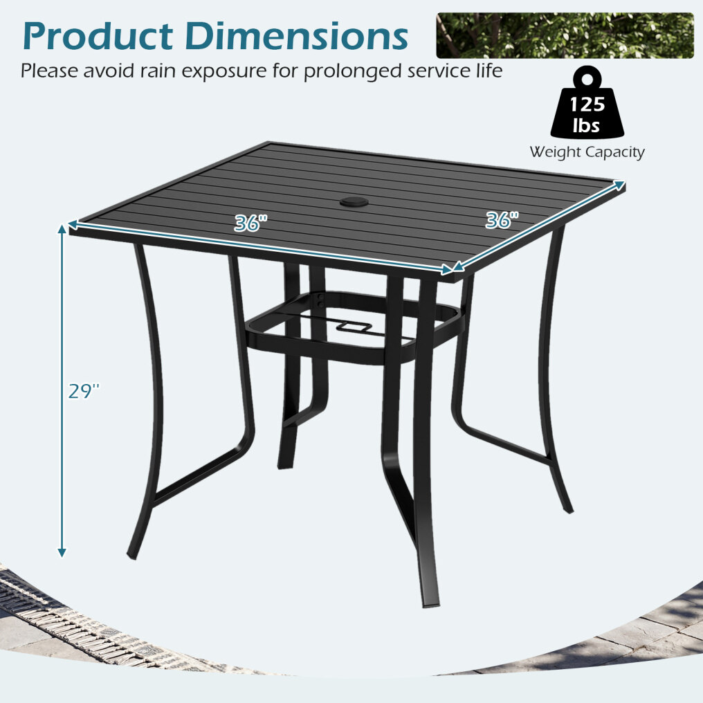 ● Versatile Umbrella Hole: Featuring a built-in umbrella hole that provides the diameter of 1.57", 1.97" or 2.36", this patio table accommodates most standard patio umbrellas (not included). The bottom fixing hole firmly holds the umbrella. Note: Umbrella base needed (not included). Plus, the included lid covers the hole when not in use.